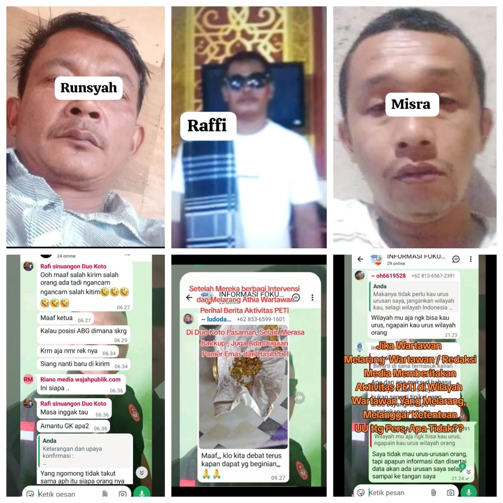Sementara itu, salah seorang yang disebut terlibat, Raffi, pemilik dua unit alat berat di lokasi tambang ilegal, juga menjadi sorotan. Dalam tangkapan percakapan grup WhatsApp Gerakan Perjuang Revolusioner & Aktivis Anti Korupsi, ia diduga menawarkan sejumlah uang kepada seorang wartawan.