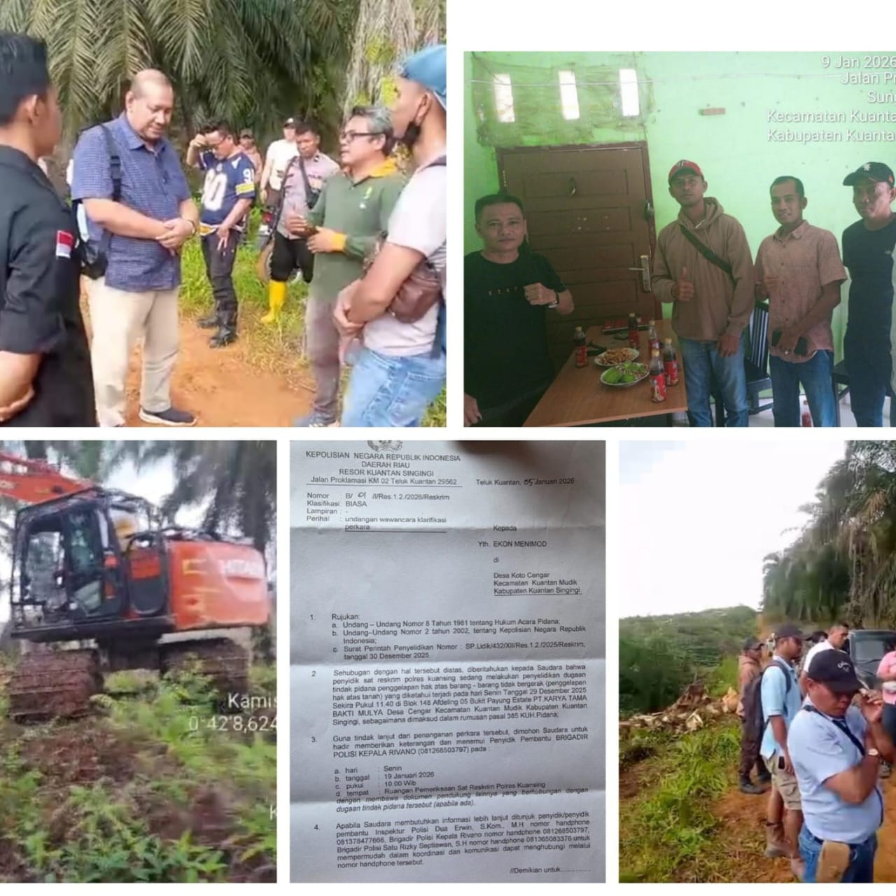 Pada hari yang sama, Ekon Menimod dilaporkan oleh pihak PT KTBM ke Polres Kuantan Singingi, atas dugaan tindak pidana penggelapan hak atas barang tidak bergerak (tanah) sebagaimana diatur dalam Pasal 385 KUHP, yang disebut terjadi pada Senin, 29 Desember 2025 sekitar pukul 11.40 WIB, di Blok 148 Afdeling 05 Bukit Payung Estate PT KTBM, Desa Cengar, Kecamatan Kuantan Mudik.