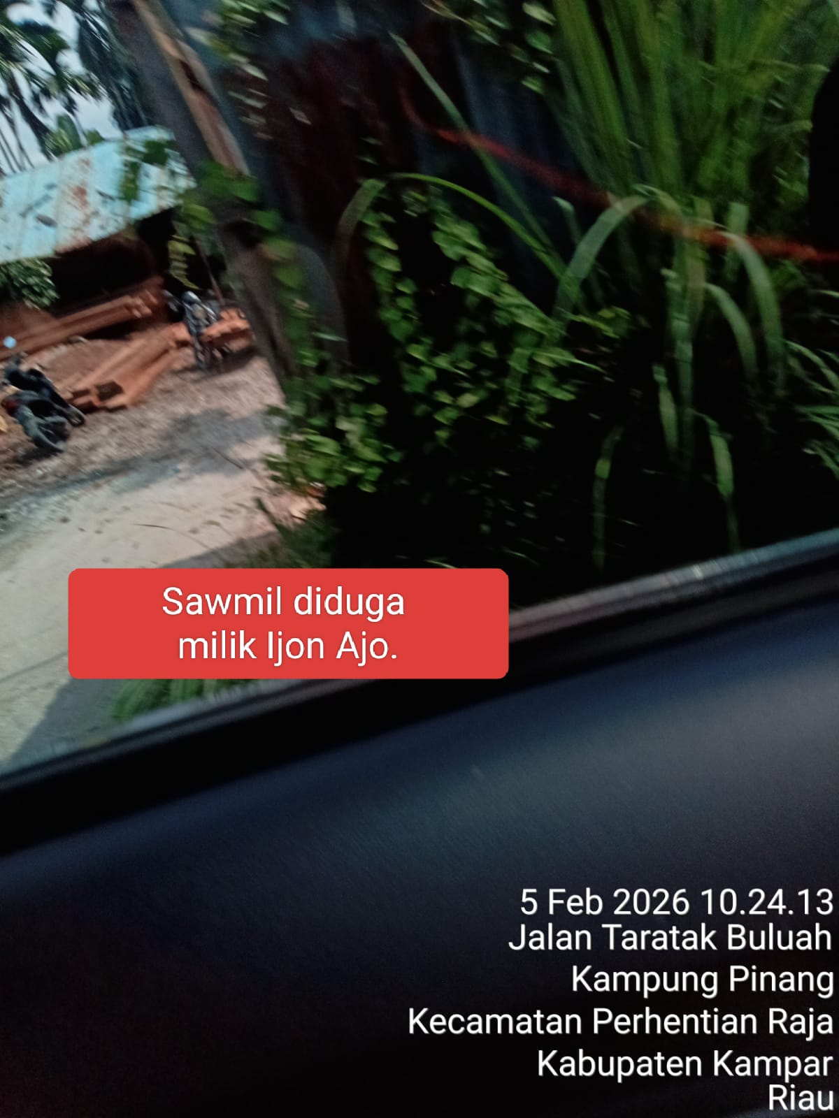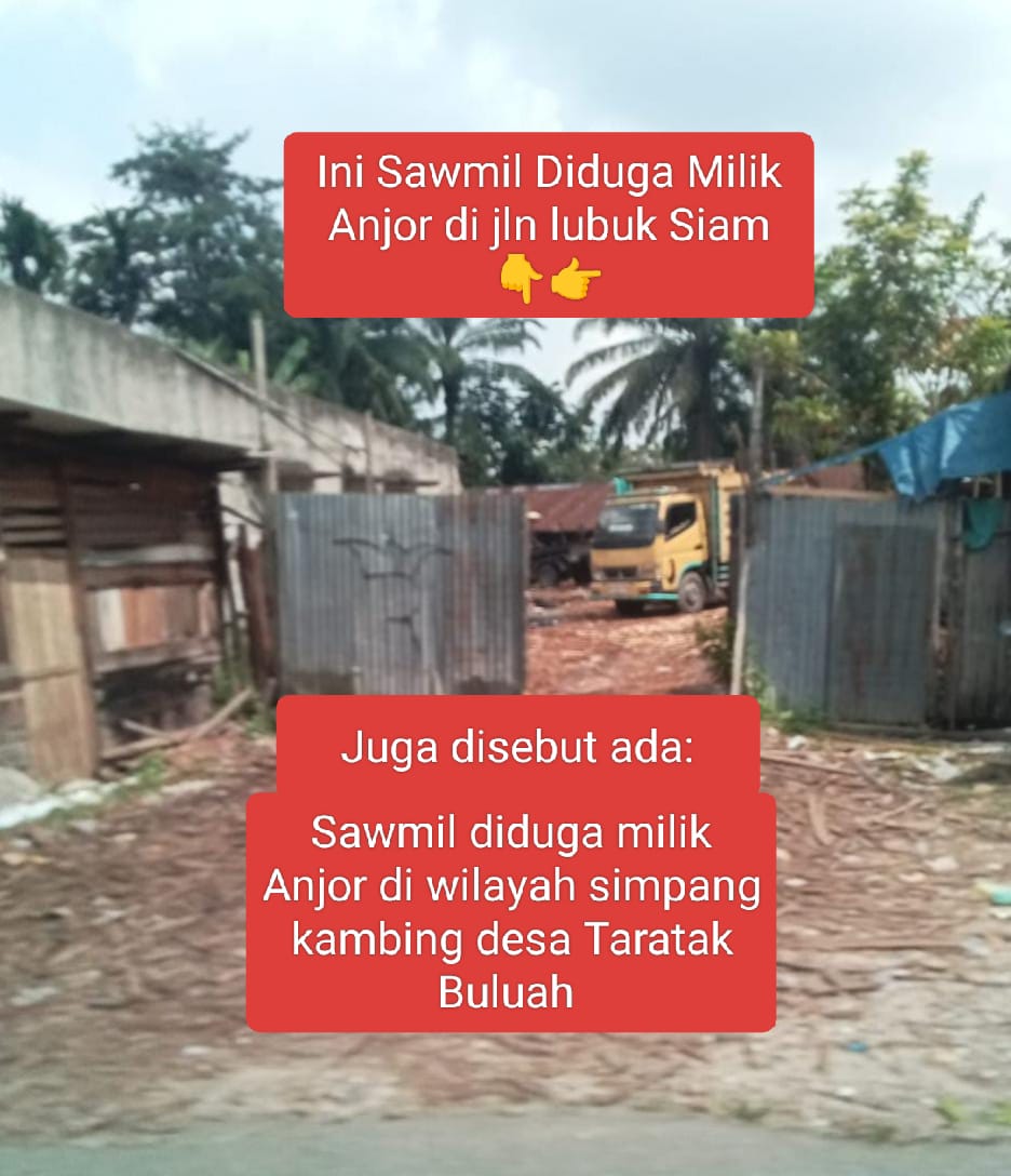 Selain itu, sejumlah sawmill yang diduga beroperasi di wilayah Simpang Kambing, Desa Taratak Buluah, antara lain disebut milik:
