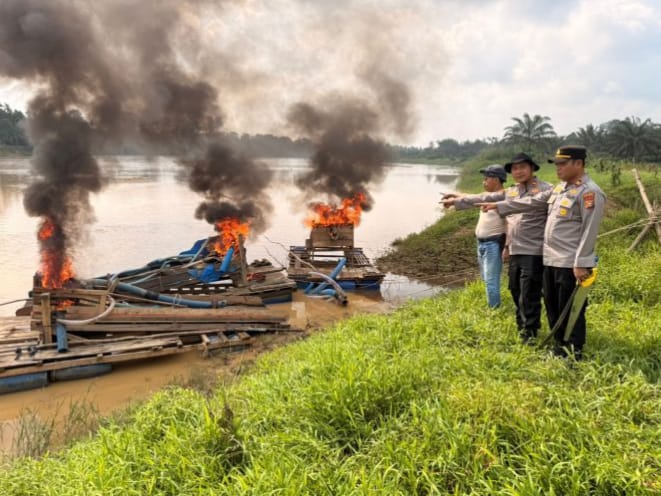 “Seluruh rakit yang ditemukan langsung kami musnahkan di tempat dengan cara dirusak dan dibakar. Langkah ini diambil untuk mencegah aktivitas ilegal kembali beroperasi,” tegasnya.