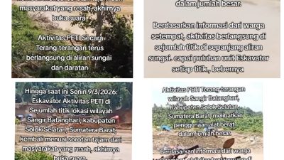 SOLOK SELATAN — Aktivitas Pertambangan Emas Tanpa Izin (PETI) di wilayah Kecamatan Sangir Batanghari, Kabupaten…